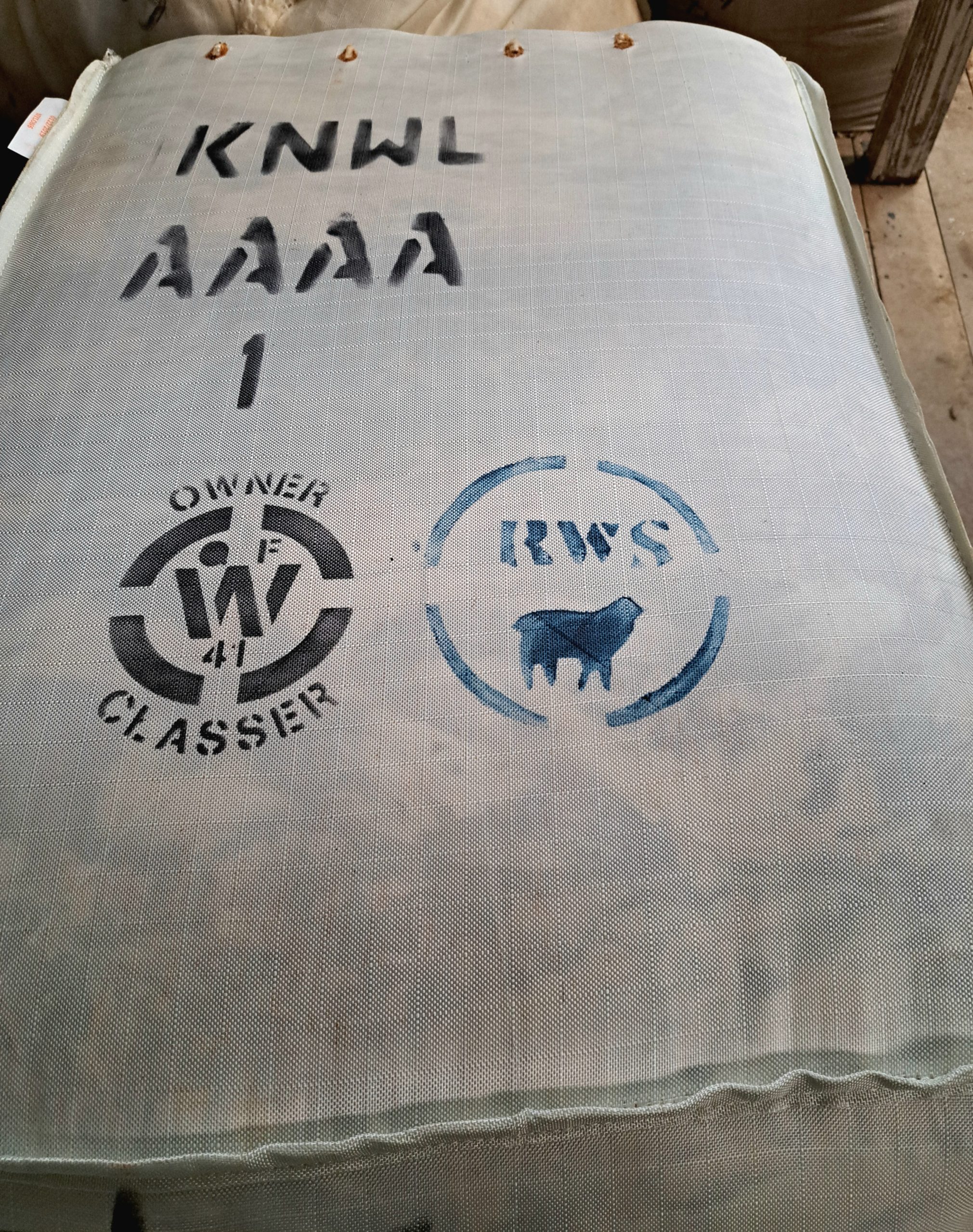Karl is part of the Falkland Islands Department of Agriculture Quality Falkland Wool Scheme (QFW), his stencil number is 41. This scheme is audited to ensure best practices for preparation of wool clip.